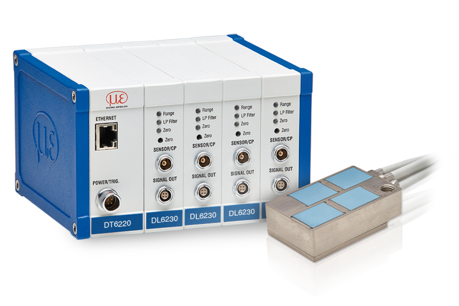 The system consists of a DT6220 controller, a specially developed 4-track sensor and proprietary evaluation software for non-contact detection of the disc thickness variation. In order to achieve maximum efficiency of the braking system, the disc must have an even thickness. Unevenness, runout or abrasion on the friction surface of the disc cause the brake pads to lose contact with the rotating disc. Thickness measurements can be carried out in test benches, in road tests or in car repair shops.