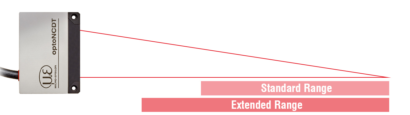 The optoNCDT 5500 sensors are available with different measuring ranges. In addition to the standard measuring range, an extended measuring range can be used, which significantly expands the fields of use. With IP67 protection and high resistance to ambient light, the laser sensors can also be used in challenging environmental conditions.